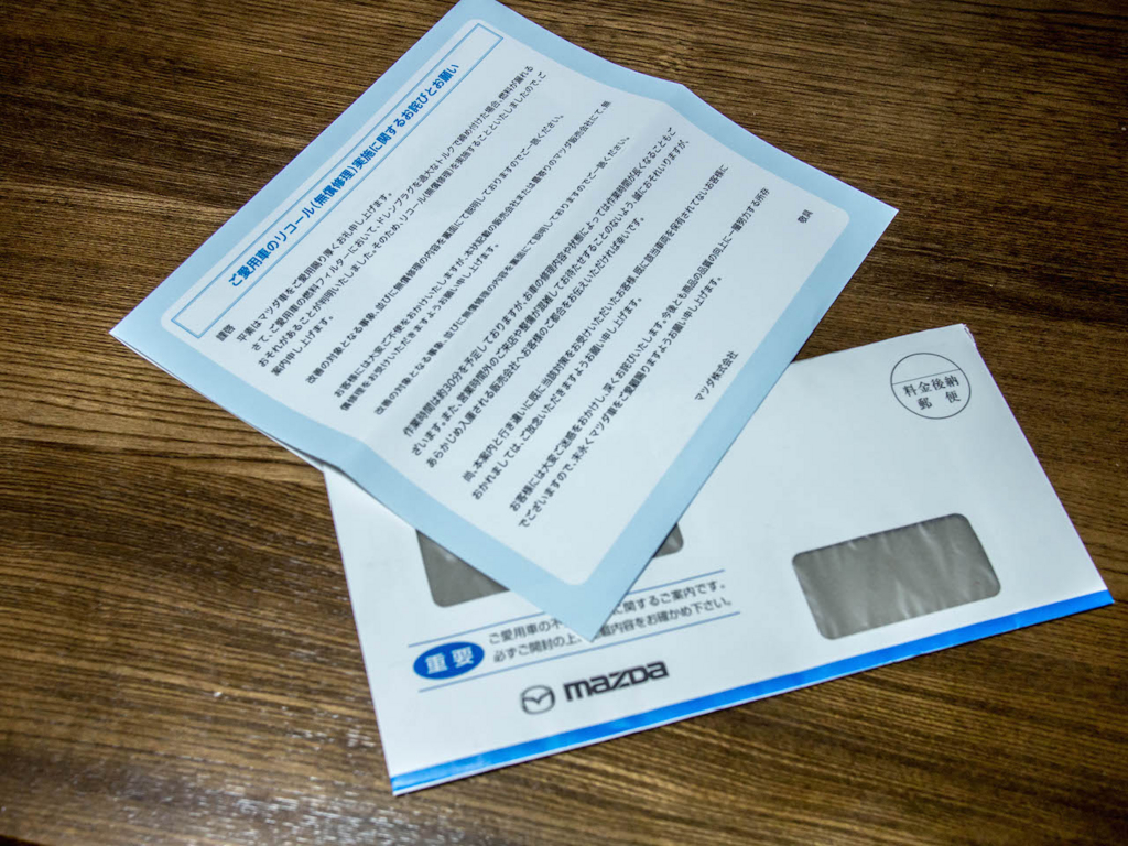 自宅に帰ってみると、マツダから封書が届いておりました。
